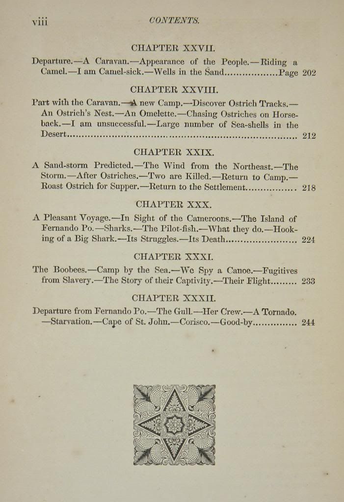MY APINGI KINGDOM: WITH LIFE IN THE GREAT SAHARA ~~~~~~~~~~~~~~~~~~~~ This auction is for an original 1871 edition of "MY APINGI KINGDOM: WITH LIFE IN THE GREAT SAHARA AND SKETCHES OF THE CHASE OF THE OSTRICH, HYENA, ETC." by Paul Du Chaillu, published by Harper & Brothers Publishers of New York. This is by an early explorer of equatorial Africa. The author traveled hundreds of miles into the interior of Africa and has become "king" of an Apingi village. He continues his explorations and adventures until he runs so low on supplies he is obliged to return to the coast. The second part of the book recounts his voyage to Senegal and explorations of the Sahara. The country is filled with people of different customs and superstitions, surrounded by immense forests, mountainous regions, with a large river flowing through this beautiful country. This is a semi - autobiographical account of what Mr. Du Chaillu did there in his kingdom and a journey to the great Desert, concluding with a cruise along the western coast of Africa. Paul Belloni du Chaillu (July 31, 1831 (disputed) – April 29, 1903) was a French-American traveler and anthropologist. He became famous in the 1860's as the first modern outsider to confirm the existence of gorillas, and later the Pygmy people of central Africa. He later researched the prehistory of Scandinavia. Paul was sent in 1855 by the Academy of Natural Sciences at Philadelphia on an African expedition. Until 1859, he explored the regions of West Africa in the neighborhood of the equator, gaining considerable knowledge of the delta of the Ogooué River and the estuary of the Gabon. During his travels from 1856 to 1859, he observed numerous gorillas, known to non-locals in prior centuries only from an unreliable report by Hanno the Navigator of Carthage in the 5th century BC and known to scientists in the preceding years only by a few skeletons. He brought back dead specimens and presented himself as the first white person to have seen them. A subsequent expedition, from 1863 to 1865, enabled him to confirm the accounts given by the ancients of a pygmy people inhabiting the African forests. Du Chaillu sold his hunted gorillas to the Natural History Museum in London and his "cannibal skulls" to other European collections. (A fine cased group shot by du Chaillu may be seen in Ipswich Museum in Suffolk, England.) Narratives of both expeditions were published, in 1861 and 1867 respectively, under the titles Explorations and Adventures in Equatorial Africa, with Accounts of the Manners and Customs of the People, and of the Chace of the Gorilla, Crocodile, and other Animals; and A Journey to Ashango-land, and further penetration into Equatorial Africa. While in Ashango Land in 1865, he was elected King of the Apingi tribe. After some years' residence in America, during which he wrote several books for the young based on his African adventures, du Chaillu turned his attention to northern Europe. Published in 1871, this book is in GOOD CONDITION for its age; especially to be 142 YEARS OLD! The hinges are in good order. There is a libris paste down from a previous owner. A "stamped" number can be found on the title page, as evidenced on the enclosed photos below. The interior is, overall, neat and clean with a few blemishes. The text block remains unmarked and clear for enjoyable reading. There are a total of 254 pages in this 5 1/4" X 7 1/2" volume. The ILLUSTRATIONS that accommodate the text are numerous engravings that contribute nicely to the text. The cover offers its original cloth with beautiful gilt embellishments such as title and pictorials on both the spine and cover. There is some cloth wear to the corner boards. This item is being offered with NO RESERVE. GET IT WHILE YOU CAN!!! GOOD LUCK!!!