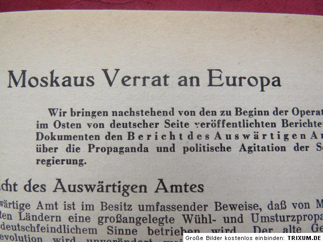 Riga and Windau in German hand - results of the extermination battle in Bialystok and Minsk - 15 anniversay of naming the Hitleryouth - - Salla occuoied - Witebsk in German hand - break through the Stalin line - begin of the Bayreuth festival - Mölders gained his 101 victory - award with Oak leaves and Diamonds - Oak leave with swords for Oesau - The Führer honors the Crete fighters - first German air raid attack on Moskow and much more...