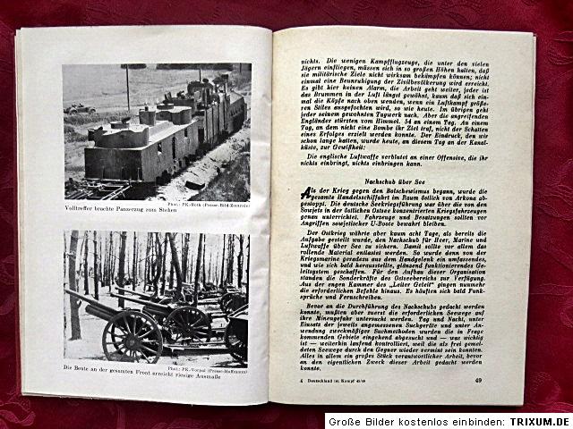 I offer you the rare German book "Germany in battle" from 1941. This book was never sold in German bookstores, because it was an internal edition by the High Command of the German Wehrmacht. The topic is the timetable from July 1941, so it contains reports of what happened in July1941. The offered book has 160 pages and it is in a very good condition.