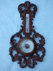 Circular barometer in the center. Measures ~4" across. Back panel is wood. Has some scuffing on the edges of wood. Brass ring around barometer is cracked near one screw. Glass thermometer on the stem.Top Rated Plus$14.50$26.22 shippingVintage Barometer - Made in West Germany - Wood - Stormy Rain Change