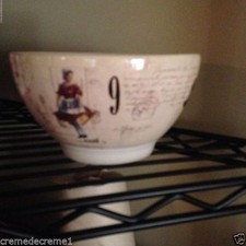 Off-white textured bowls with red and green trim, decorated with Christmas trees and holly. Condition: Pre-owned. Minor wear. One bowl with small chip on rim. One bowl with small chip on rim and 2 smaller chips on other side.Top Rated Plus$45.00Available for best offeror Best Offer$41.83 shippingFITZ & FLOYD HOLIDAY SOLSTICE SERVING BOWL
