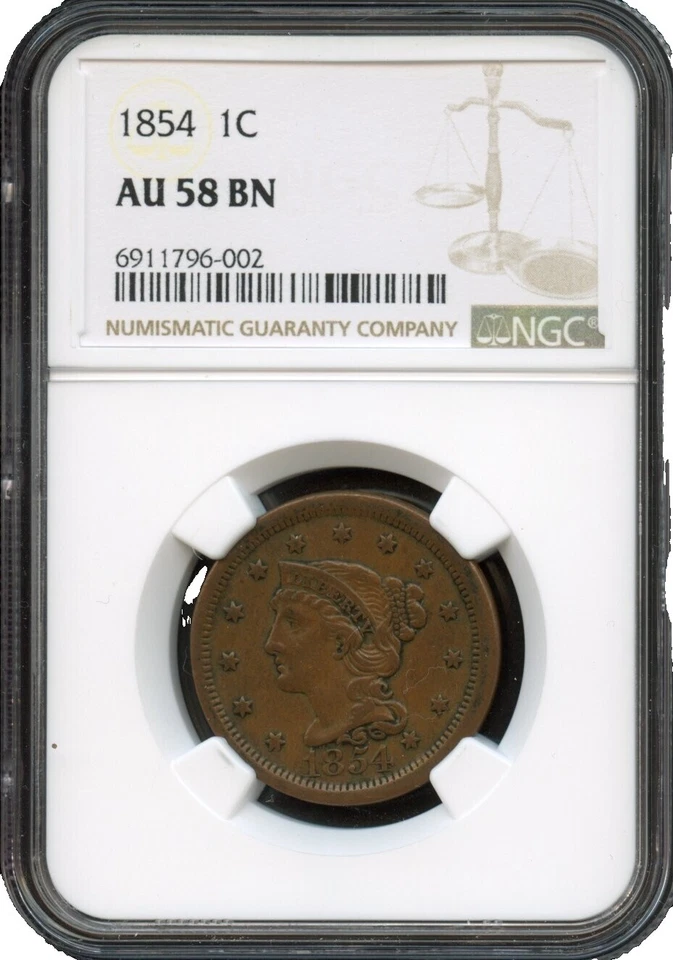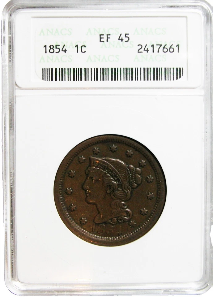 1854 Braided Hair Large Cents