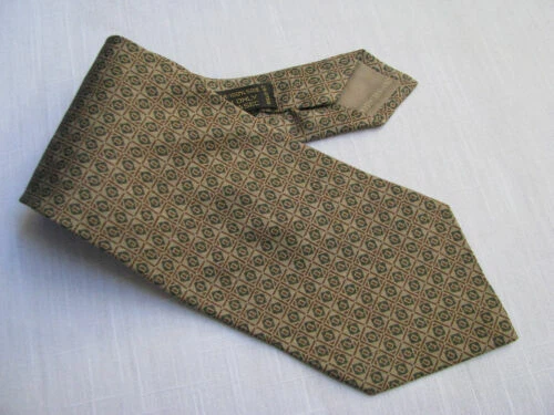 Giorgio Armani Cravatte Tie Italy Silk Beige Green Brown Geometric Diamond Dot