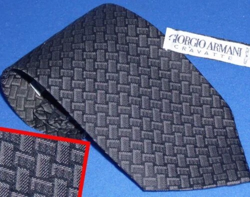 Giorgio Armani Tie Black Collezioni Silk Necktie ITALY Designer Geometric