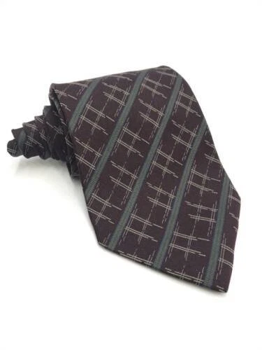 Giorgio Armani Neck Tie Men Black Brown Geometric Silk Luxury Gothic Wide Italy