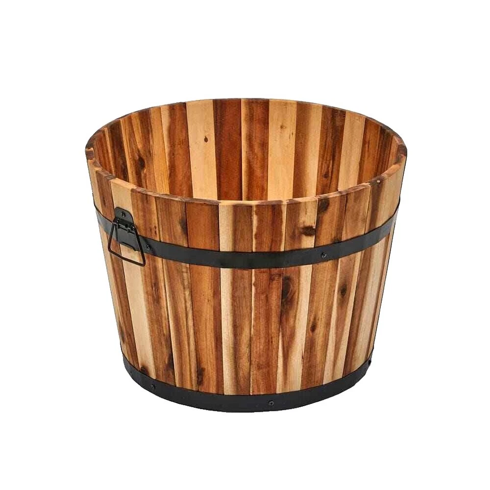 16 Inch Wine Barrel Garden Planter Resin Kentucky Walnut Faux Wood Finish New