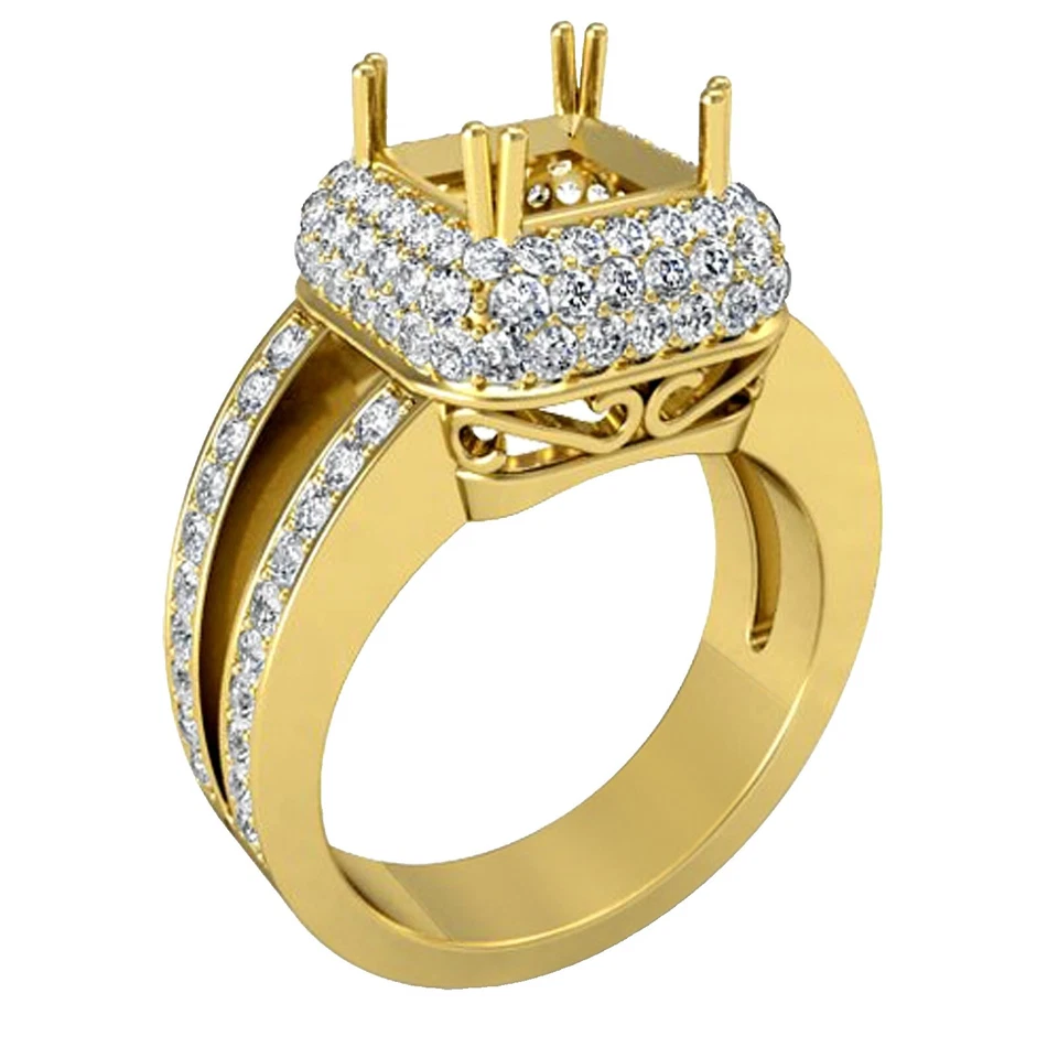 Custom Square Cut 9×9mm Natural Diamond Semi Mount Ring Setting 14K Yellow Gold