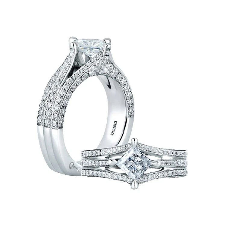 14k white gold .69ctw princess diamond cathedral engagement ring semi mount NEW