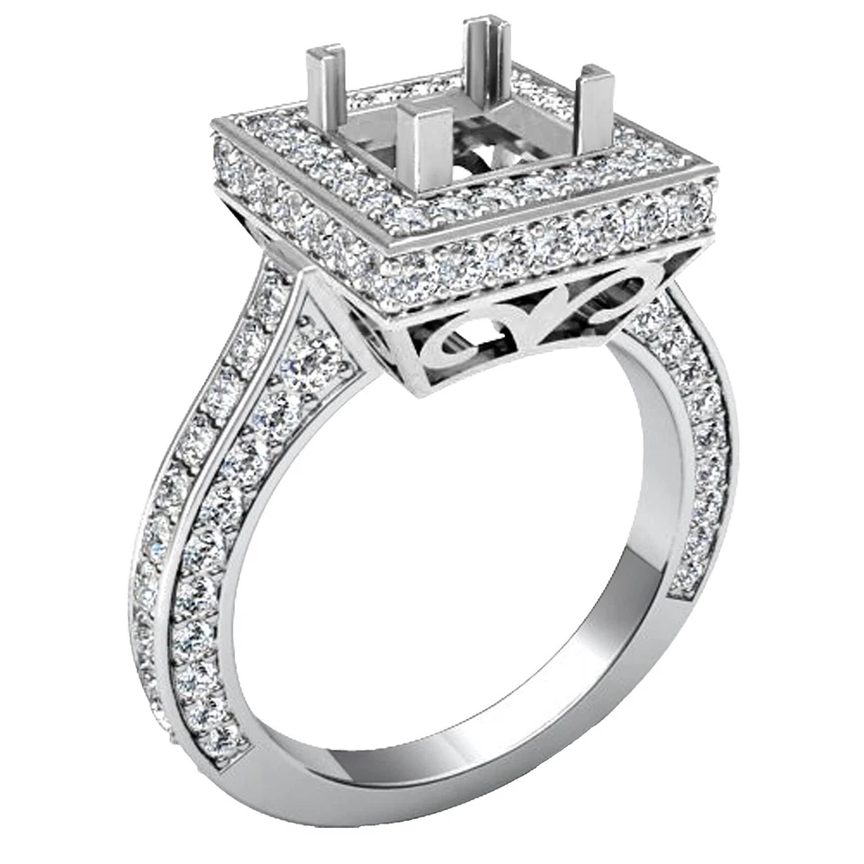 Princess Cut 6x6mm Platinum Natural Diamond Vintage Women Ring Square Semi Mount