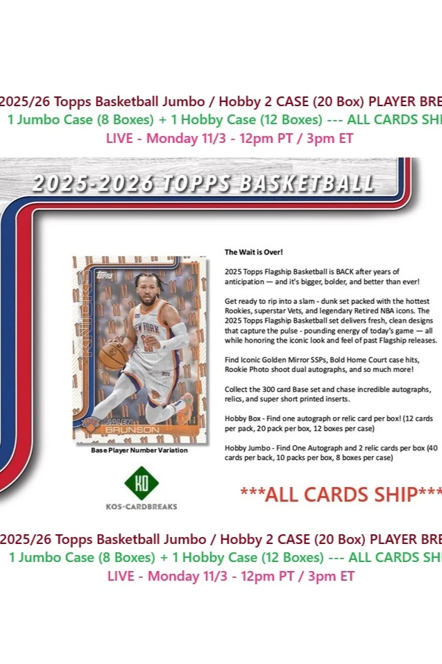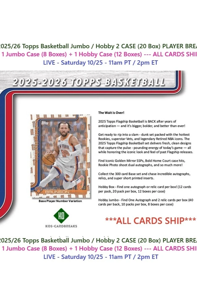 2025/26 Topps 2 CASE Jumbo/Hobby 20 Box PLAYER BREAK #1