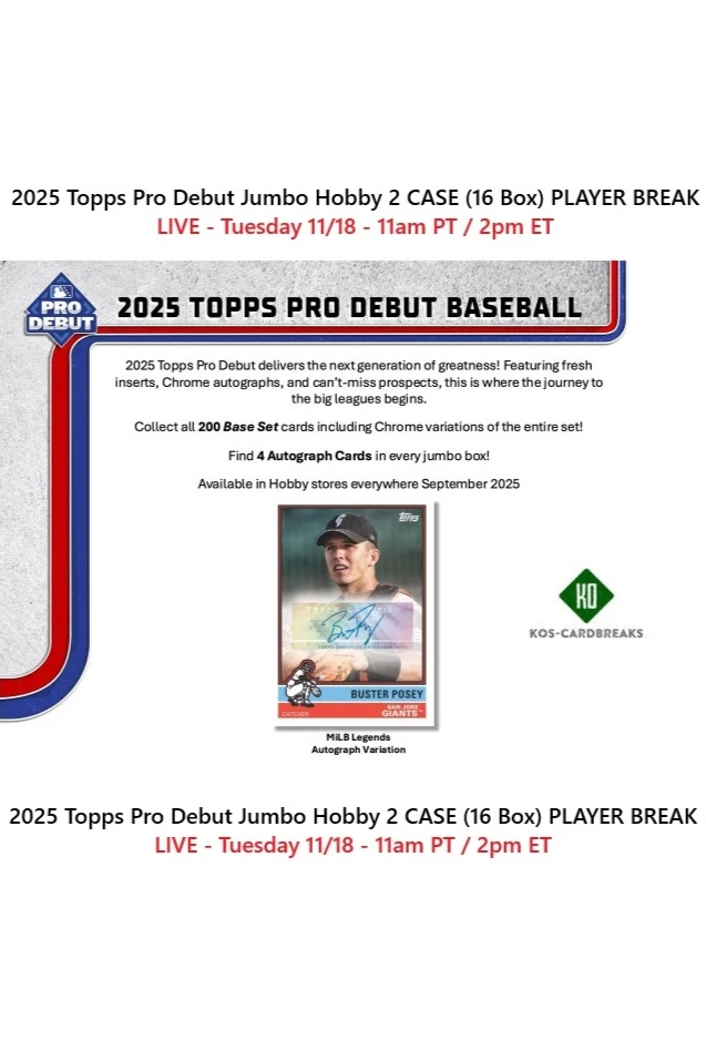 2025 Topps Pro Debut Jumbo 2 CASE 16 Box PLAYER BREAK