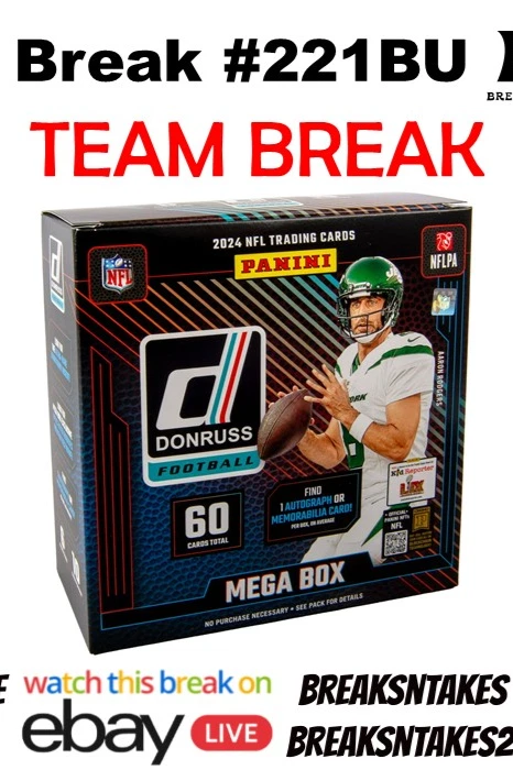 Break #221BU: 2024 Panini Donruss Football Mega Case (20 Box) Team Break