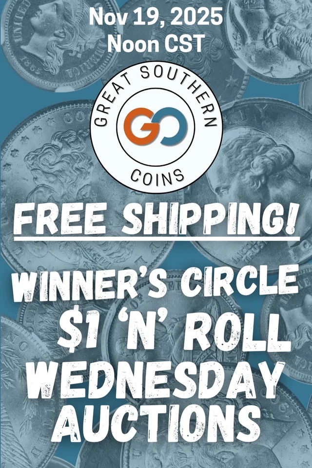 Flashy Friday | FREE SHIPPING $1 'n' Roll Rare Coin Auctions