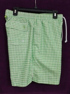 Men's TailorByrd Gingham Lime/White Plaid Swim Shorts - Medium 32-34