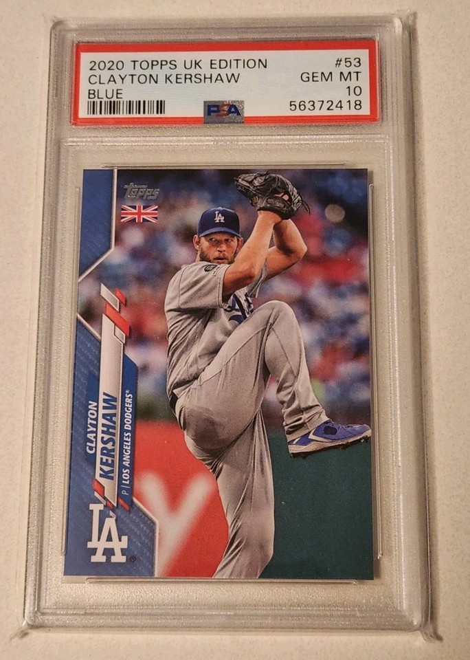 2020 Topps UK #53 Clayton Kershaw Blue /75 PSA 10 Gem Mint Color Match Pop 1