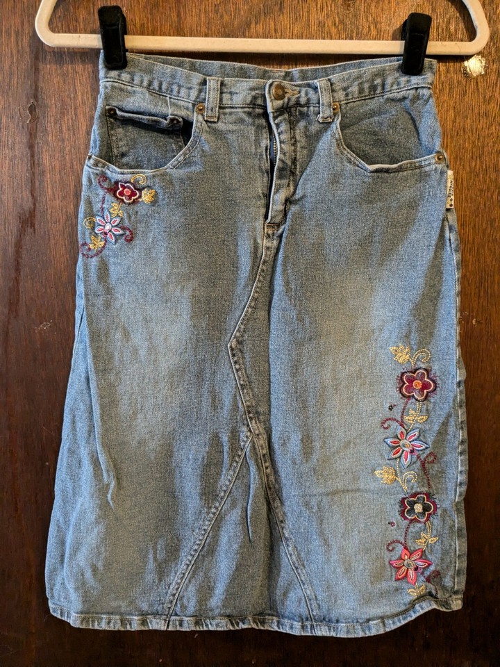 Lizzie McGuire Kids Size 14 Denim Skirt With Floral Embroidery