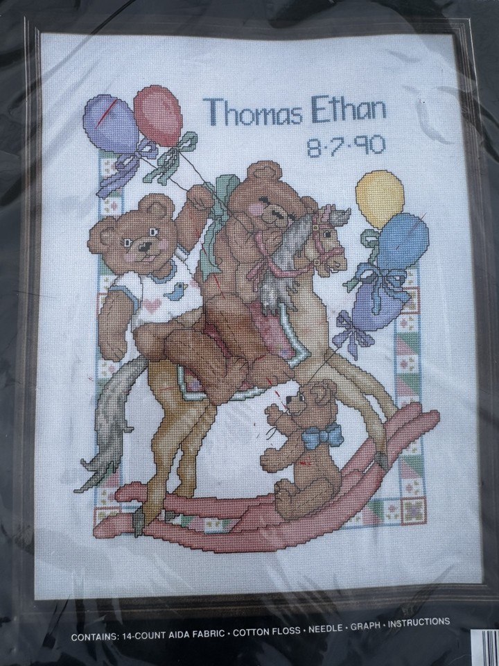 Vintage 1989 Rocking Teddy Counted Cross Stitch Kit Janlynn 00-358 14 X 18”
