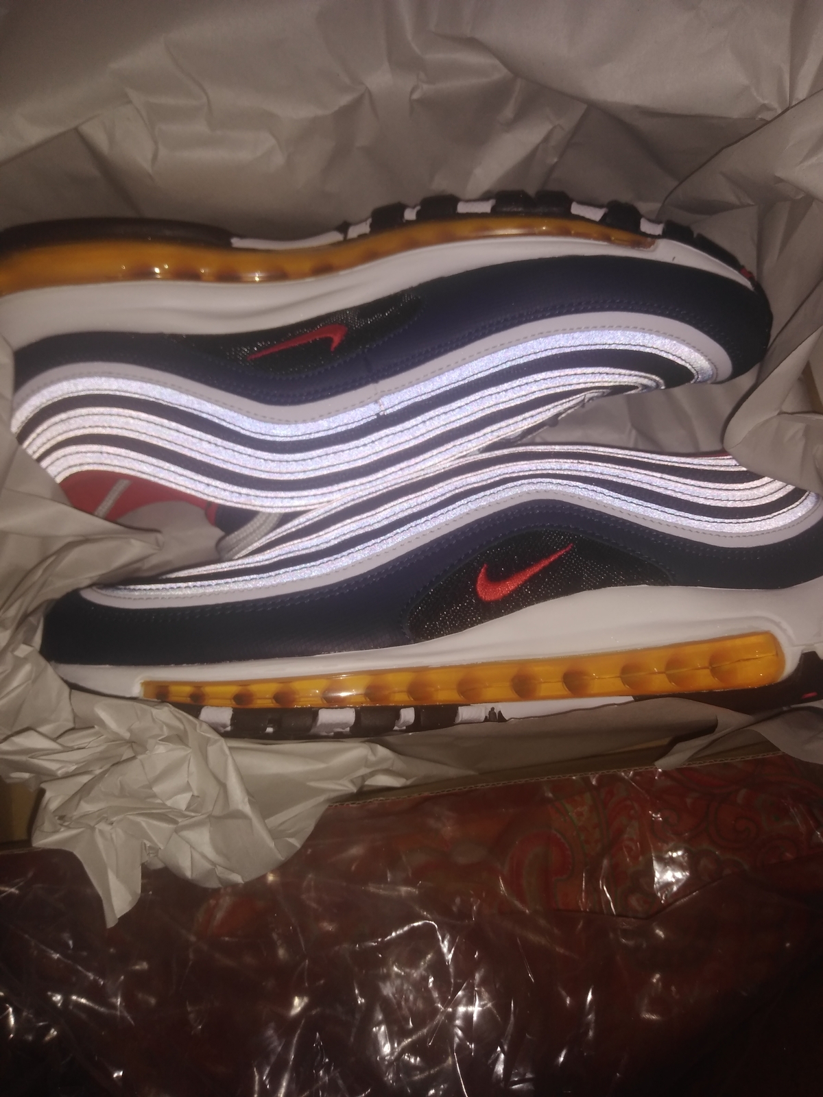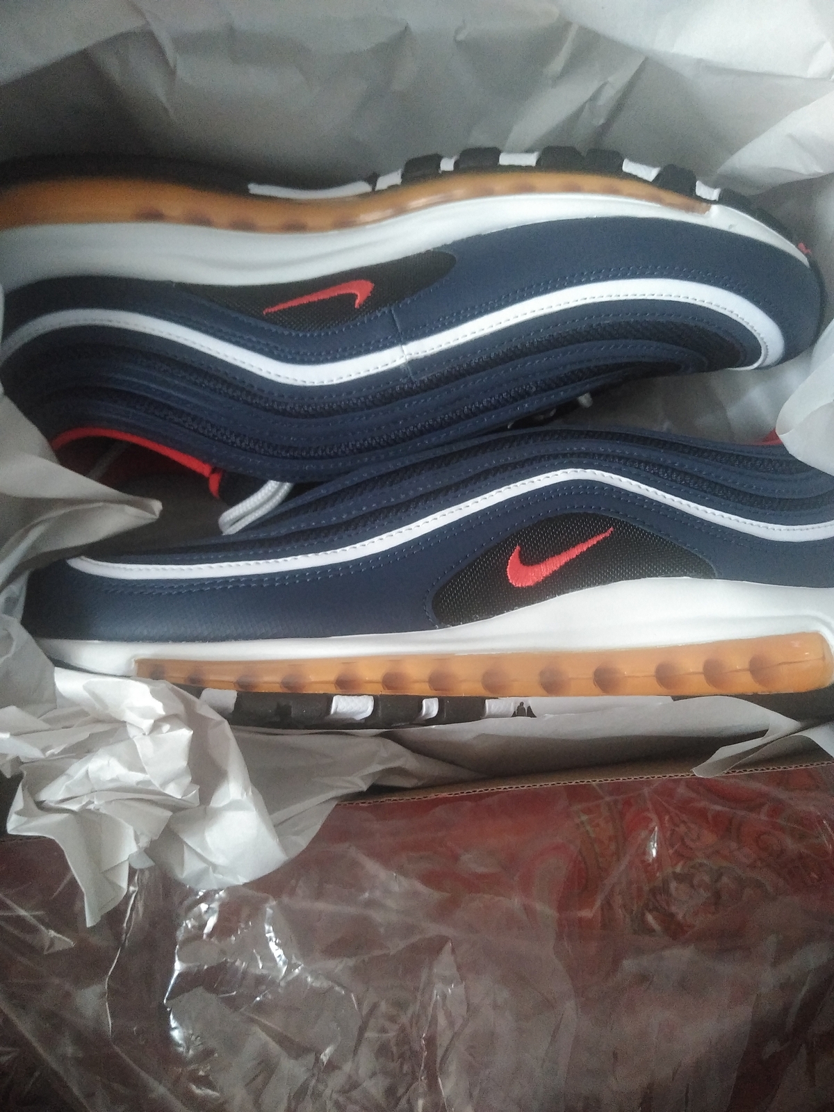 Size 11 - Nike Air Max 97 Midnight Navy Habanero Red, 921826-403 Mens