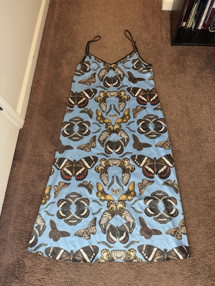 Contrado Max Blue Butterfly Satin Slip Stress Spaghetti Strap PLUS 3X