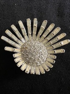 VTG Mid Century Mod Silver Crystal Starburst Baguette Stone Brooch Pin Sunflower