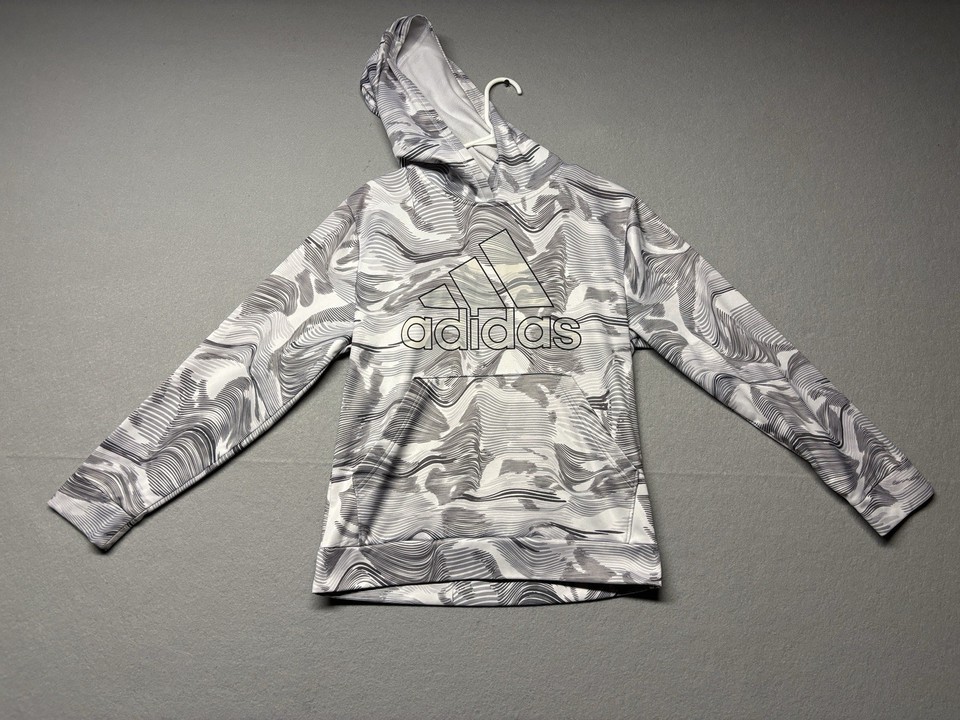Adidas Hoodie Youth XL White Gray Black Camo Sweatshirt Pocket Sweater