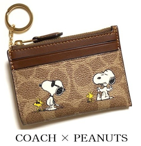 COACH x Peanuts Snoopy ID Case Card Holder CBT14 IMY3O Signature Canvas New