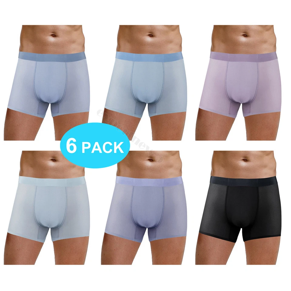 Mens Ice Silk Boxers 6 Pack Breathable Elasticated Waistband Elastane Stretch US