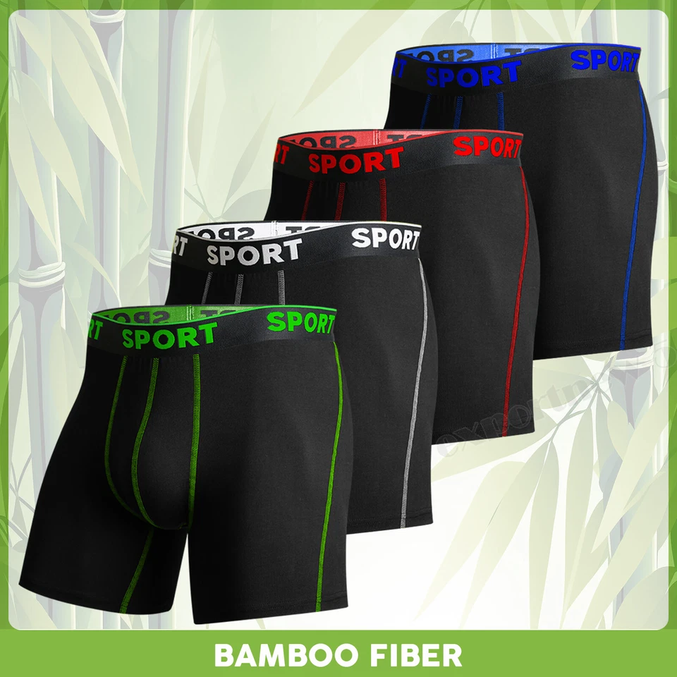 4 Pack Bamboo Fiber Boxer Shorts - For All-Day Comfort Mens Underwear Sports