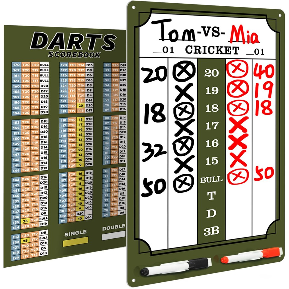 Darts Scoreboard - Dry Erase Dart Scoreboard for 301, 501 and Cricket Games Come