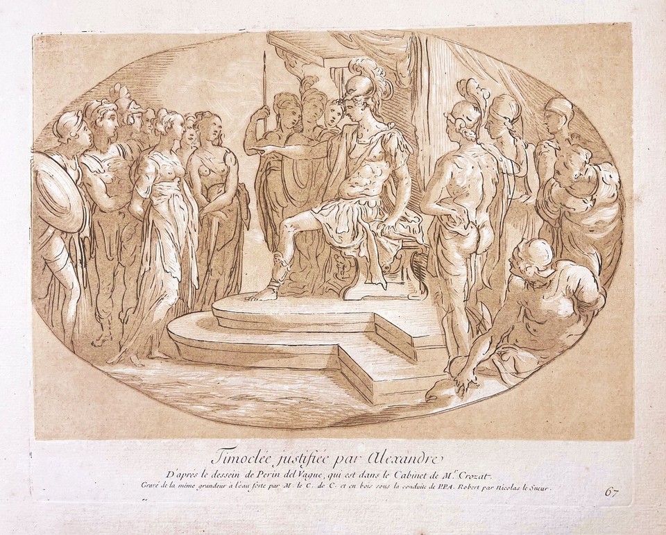 Perino del Vaga / Sueur Alexander the Great Chiaroscuro Etching 1728