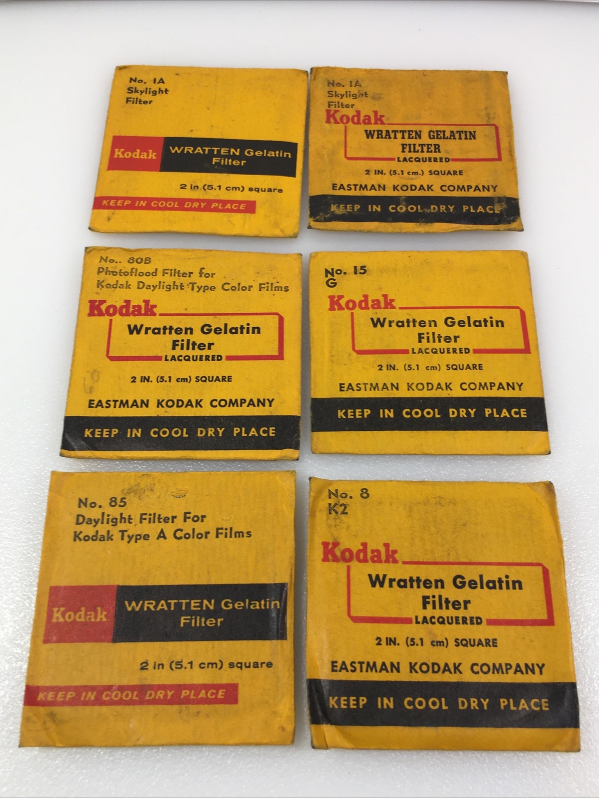 Lot of 6 Kodak Wratten Gelatin Filter #15G #85 #1A #8 2"x2" 4 Are Sealed