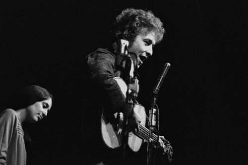 Vintage 60's Photograph of Bob Dylan with Joan Baez at folk concert in Monterey