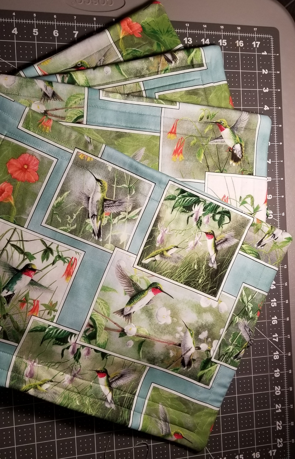 Hummingbirds BTY Hautman for Quilting Treasures Blocks on Aqua Blue