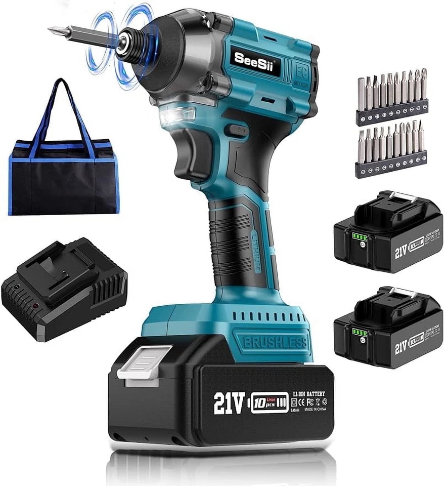 Seesii Brushless Cordless Impact Wrench High Torque Electric Impact Driver Kit