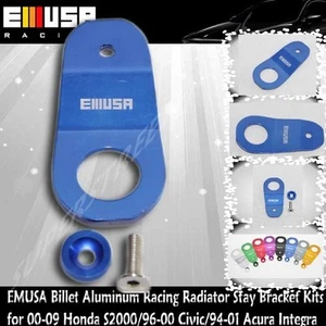 EMUSA Billet Aluminum RacingRadiator Stay Bracket Kit fit 96-00 Honda Civic Blue