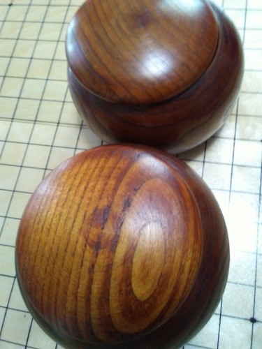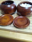 Pair Of 2 Wooden Go Game Pieces Holder Bowls