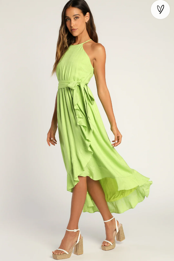 LULUS Lime Green Faux-Wrap Ruffled Midi Dress