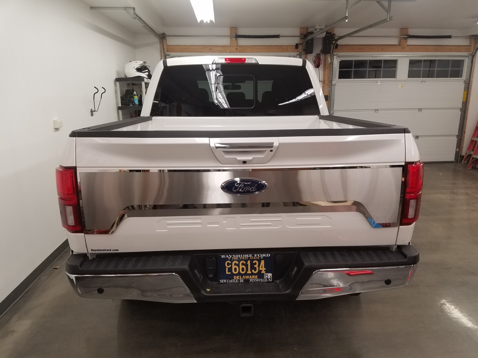 Brushed Stainless Tailgate Plate w/Polished trim for 2018 F-150 w/Oval Ford Logo