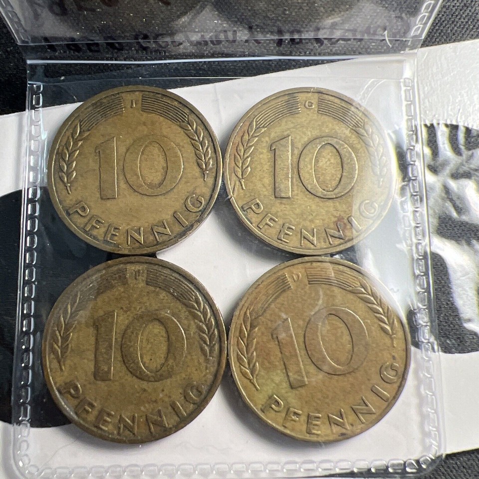 1950 Germany 10 Pfennig Coin Lot (4x) D; F; J; G Mints — All Mints — X296