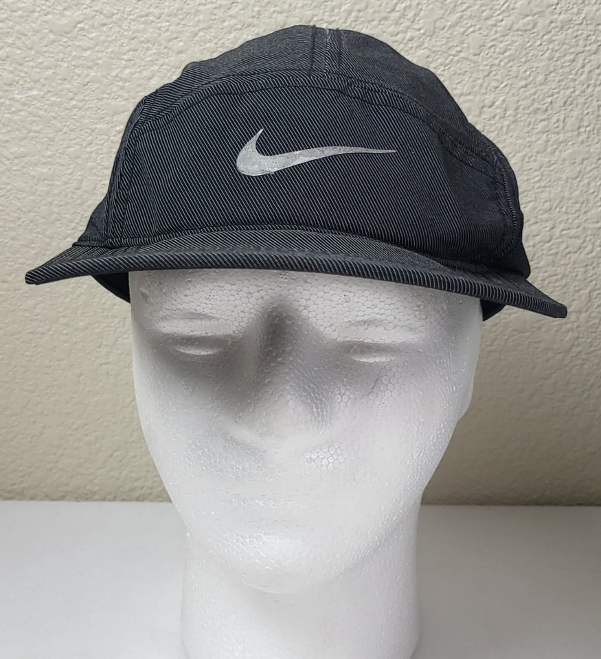 Nike Dri-Fit AW84 Trail Running Cap Hat Adjustable 5 Panel striped Black