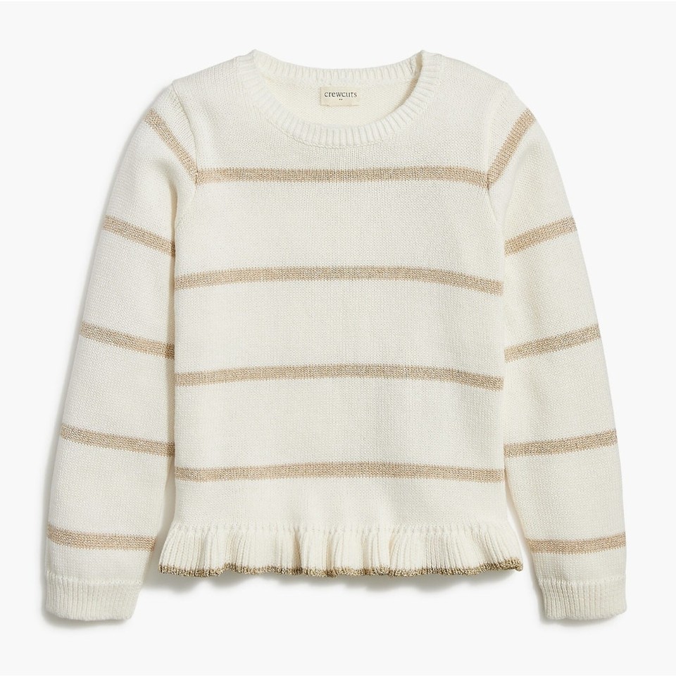 NWT Crewcuts Girls' Striped Sparkle Ruffle-Hem Pullover Sweater Cotton Size L