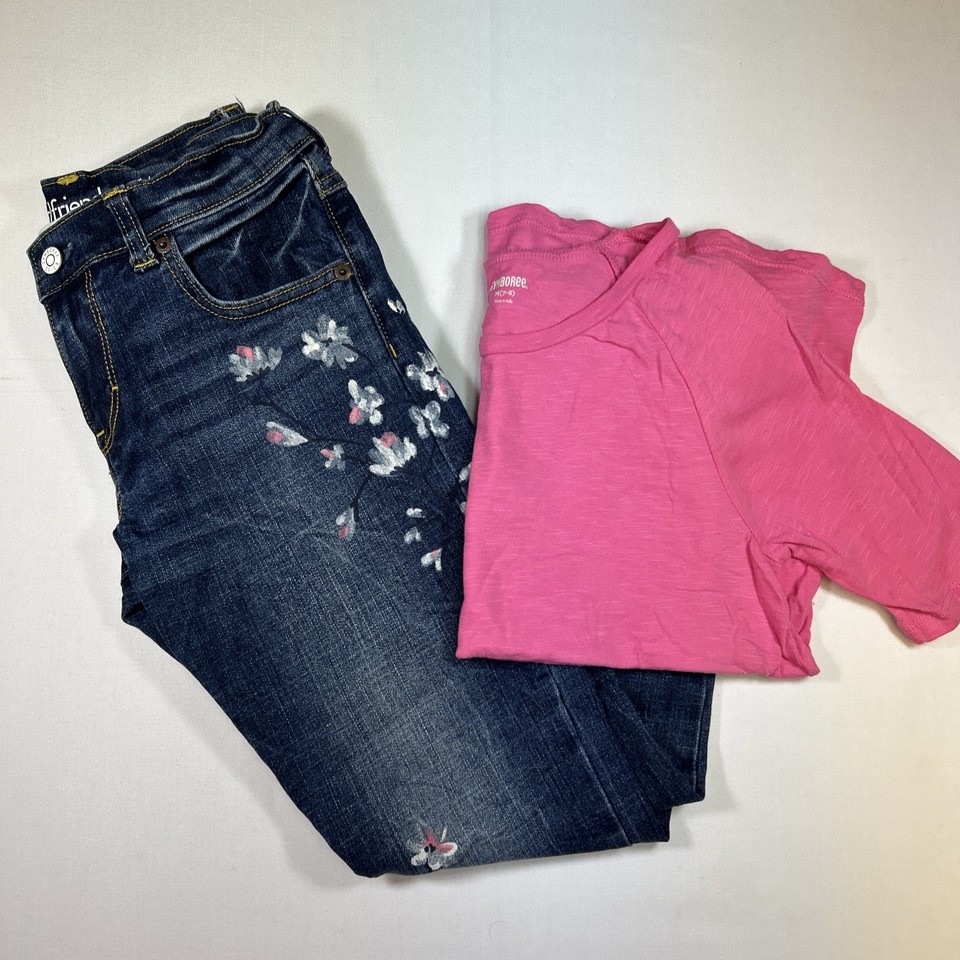 Gymboree Girls (2) Piece Outfit Painted Blue Jeans & Pink Shirt Size M 7-8 EUC