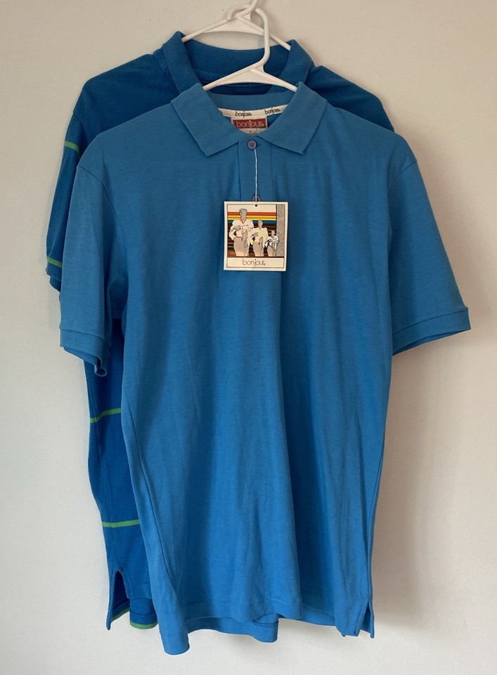 2 Vtg Bon Jour & American Eagle Mens Blue Polo Retro Polo Shirts Sz L (JT-279)