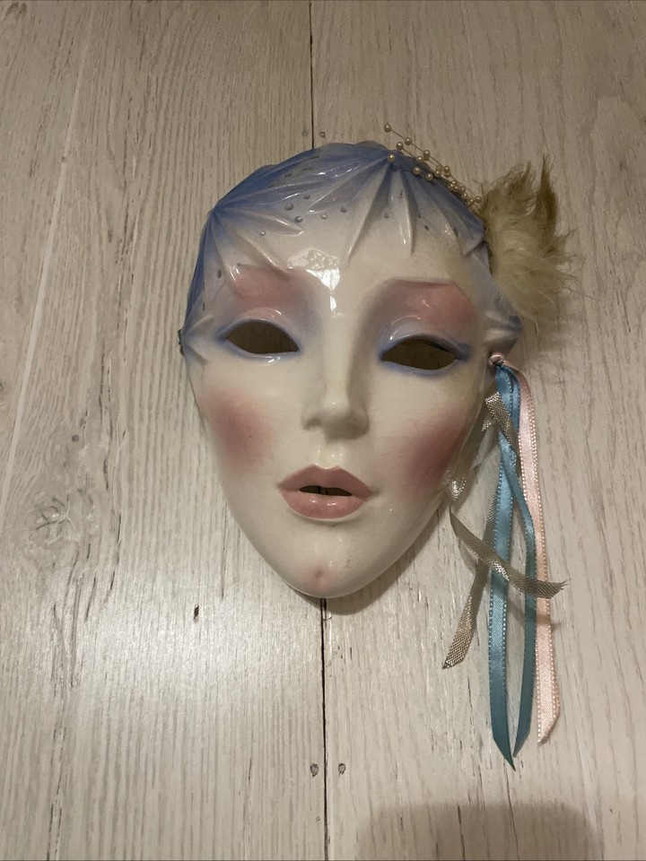 Vintage Clay Art ~ SF USA ~ 1/92 ~ Ceramic Face Mask ๐ญ Flapper Girl ~ 8โ