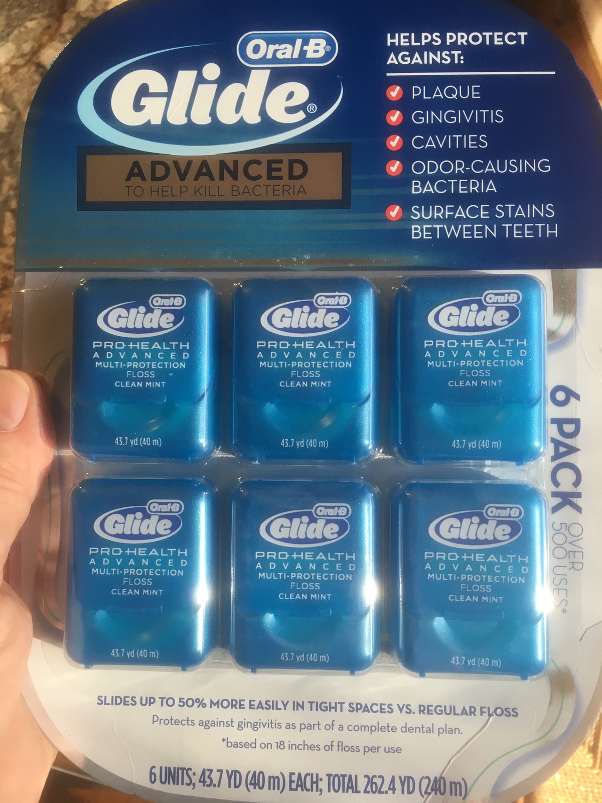 Crest Oral B Glide dental comfort plus floss .