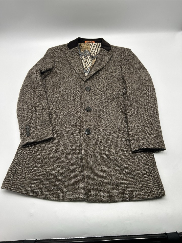 Tallia Mens Wool Blend Overcoats Contrast Velvet Top Collar Size SMALL Brown