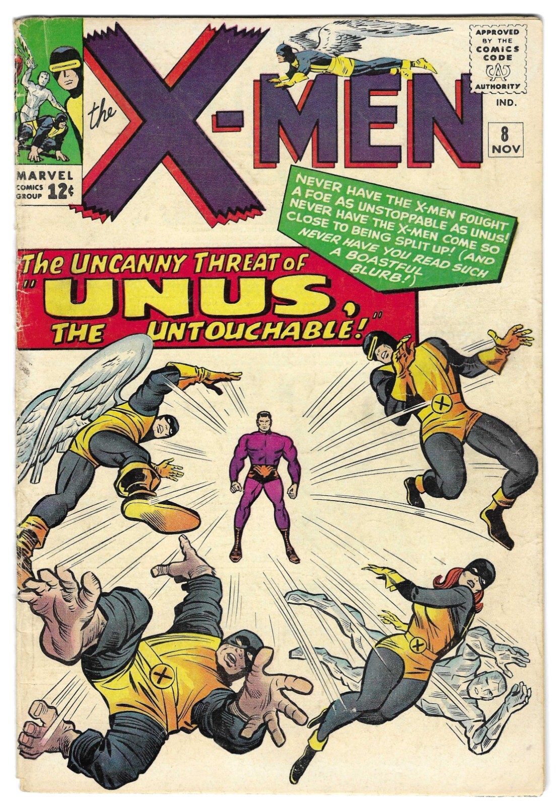 X-MEN #8 VG + 4.5 KEY ISSUE 1st Appearance UNUS THE UNTOUCHABLE! Classic Kirby