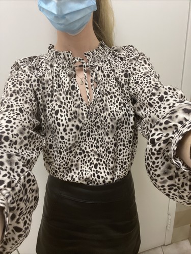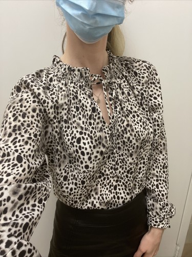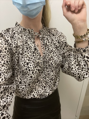 Women's Leopard Print Bishop Long Sleeve Blouse, Size XS by A New Day - NWT