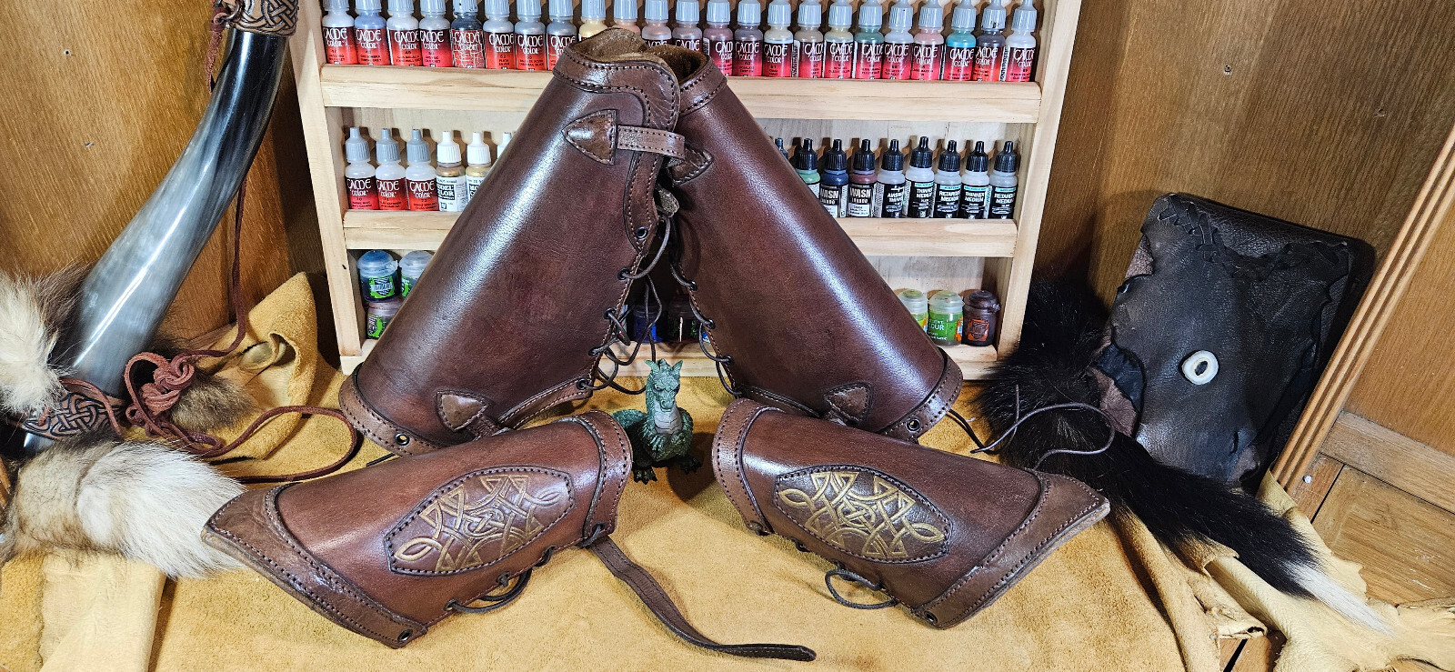Celtic Padded Leather Bracers Greaves Larp Medieval SCA RenFest