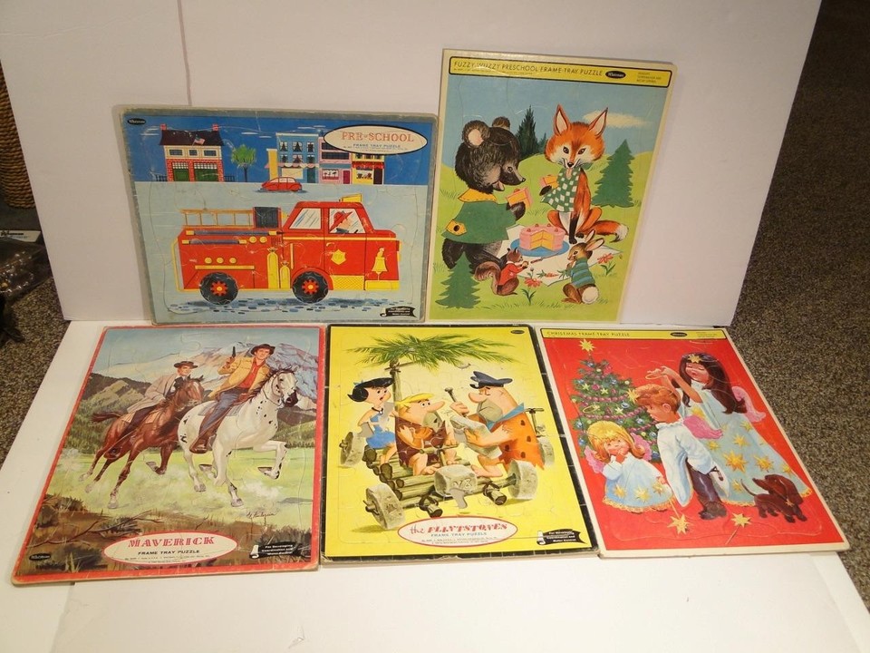 Collection of 5 Vintage Tray Puzzles - Maverick, The Flintstones, Christmas ++